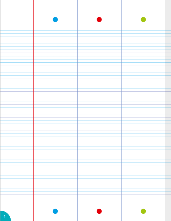 Vous pouvez observer sur l’illustration ci-dessus la présence de colonnes qui invitent l’élève à positionner son avant-bras sous la ligne d’écriture. Lorsqu’il écrit dans la colonne du point bleu son avant-bras doit être dans la colonne des points bleus.