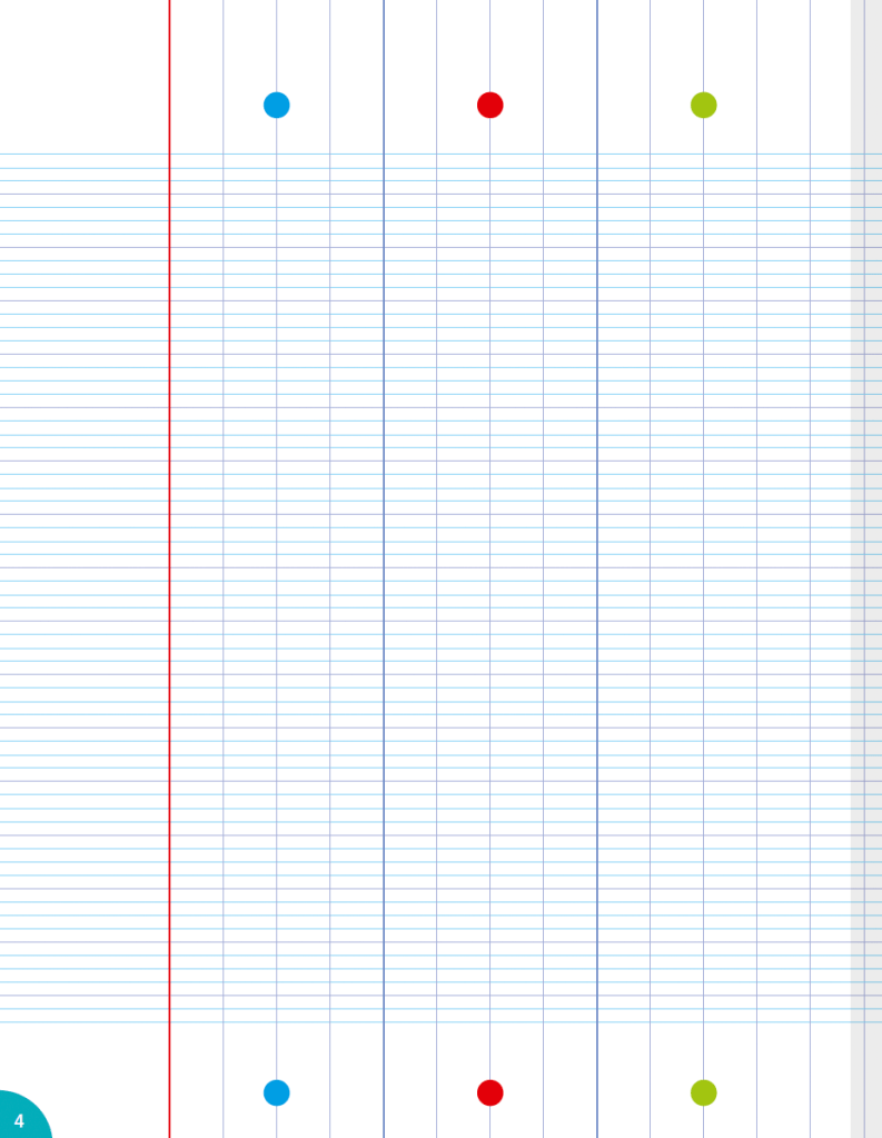Les colonnes proposées dans ces cahiers est un vrai plus car elles sont un rappel constant pour l’élève afin qu’il positionne correctement son cahier, son avant-bras, sa main. Il peut ainsi le vérifier, en s’assurant que le point en bas de la colonne dans laquelle il est en train d’écrire est bien caché par son avant-bras.